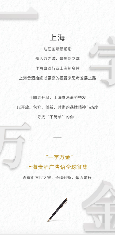 问鼎奖(1名):最终被采用的广告语,将获得每字1万元人民币的终极现金大奖,并授予“江南体育·江南官方网站-江南online(中国)”企业大使,尊享全年最高会员礼遇,同时获得江南体育·江南官方网站-江南online(中国)青澄黄贵酿1套(天青、阳澄、月黄)及价值14000元美酒礼券包等超值权益。